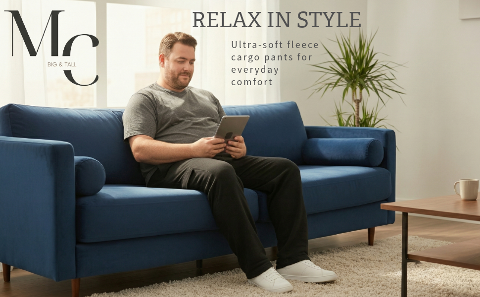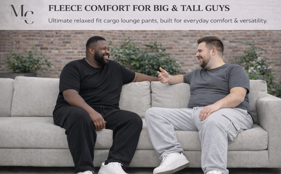 Stay relax and confident in these Big & Tall fleece cargo lounge pant. Designed specifically for big & Tall builds to provide relaxed fit through the seat and thighs ensure unrestricted movement, while the full elastic waistband with adjustable drawcord provides a secure, personalized fit. Dual side cargo pockets and functional storage and a rugged, laid back look. Finished with straight-leg styling for a clean, modern silhouette, these pants pair perfectly with your favorite tees or hoodies for all day wear.